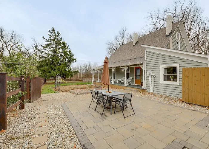 Take delight in a fully furnished kitchen provided at Pet Friendly! 1880S Zionsville Farmhouse villa and complete with a fridge, an oven, and kitchenware for your convenience. Indianapolis International airport is 47 minutes' drive away from the Zionsville holiday home.